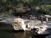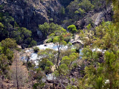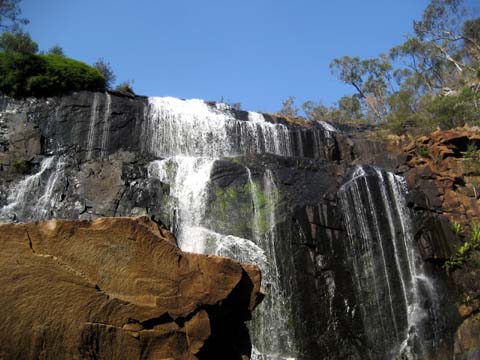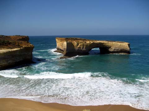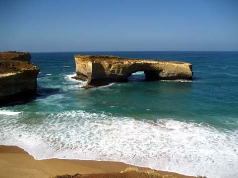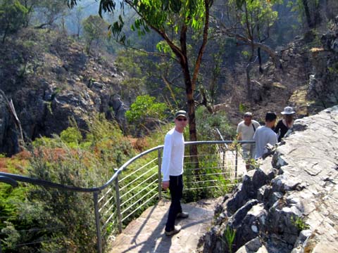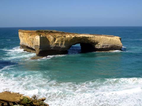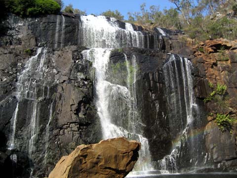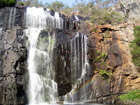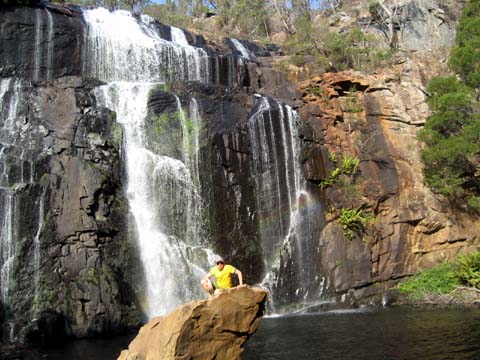 Nachdem wir unsere erste hostelnacht gut überstanden hatten gings am nächsten morgen weiter auf der great ocean road richtung Londonbridge … vorher stoppten wir am einem punkt, an dem sich eine der vielen dragischen schicksale der australischen geschichte abgespielt hat … irgentwie um 18 hundert irgentwas ist da ein schiff am felsen zerschellt … nur 2 leute überlebten … der eine ist seither ein held …blablabla .. es war zwar erst halb neun uhr morgens, aber die sonne war so heiss, dass ich ca. nach 10 minuten schon massive rotfärbung meines nackens einstellte … danach gings wieder weiter auf der ocean road ab zu den Grampians — eine, 80×40 km grossen nationalpark — coole sache … der abschluss des tages war der besuch der mckinzie falls — ein wasserfall in mitten der berge … wieder sehr sehr heiss … bin fast geschmolzen …